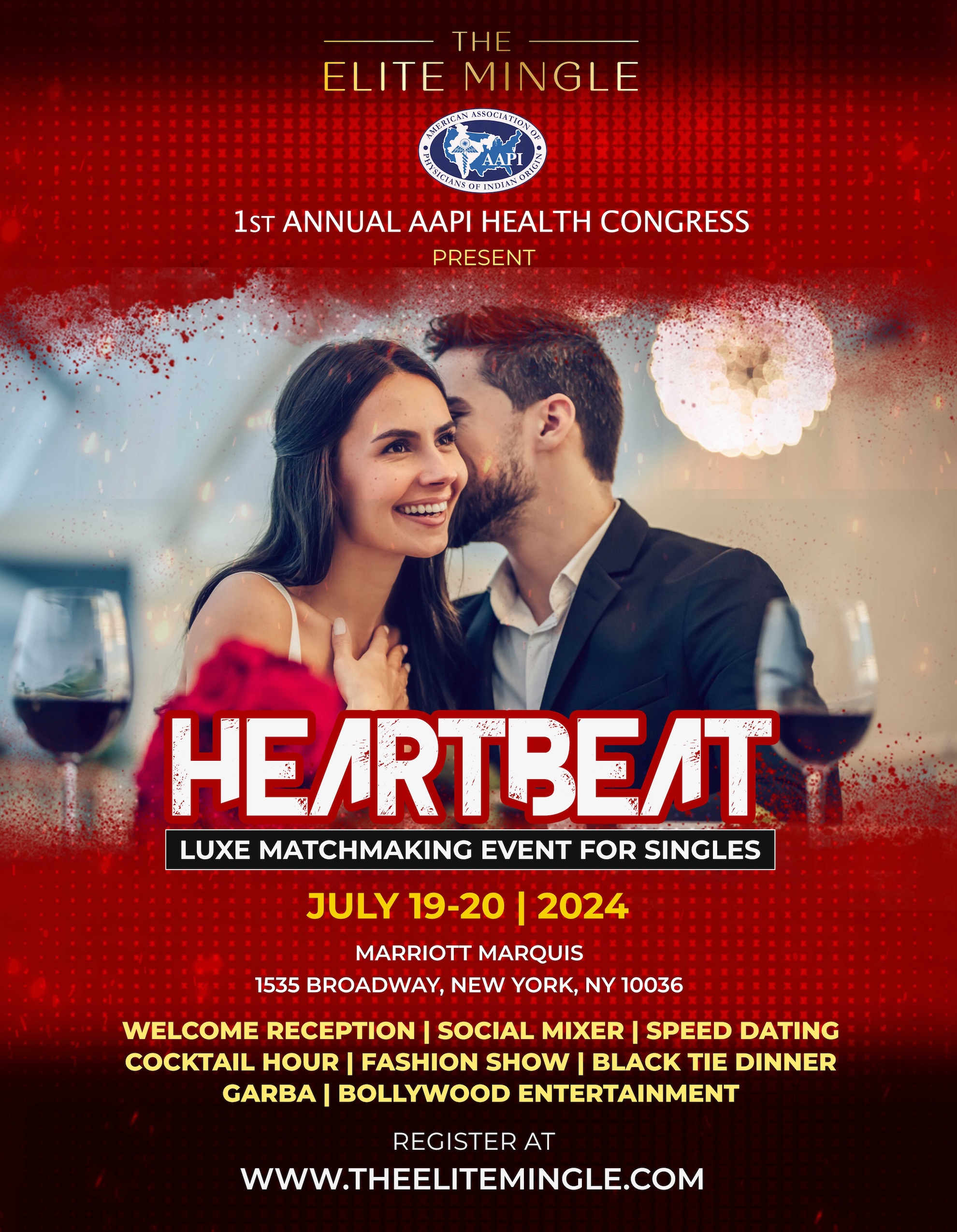 AAPI and The Elite Mingle have teamed up to host the ultimate luxurious singles matchmaking event at the AAPI World Health Congress in NYC on July 19-20, 2024! Join us for an exclusive evening of networking and connection, open to AAPI Friends & Family! Whether you're seeking romance or looking to connect with like-minded professionals, our singles event offers a relaxed atmosphere for mingling, conversation, and potential sparks! Don't miss this opportunity to meet fellow single AAPI members and non-members in a fun and inviting environment!